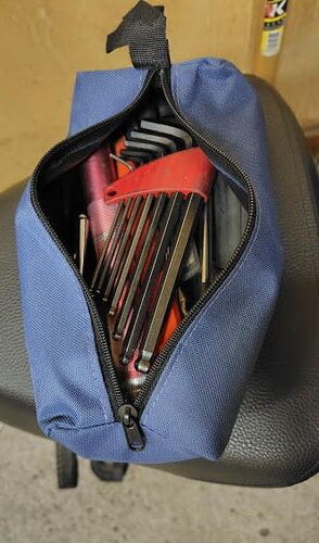 クロスカブとハンターカブの車載工具は一つです。 乗る時に車載工具を積み替えてる。 この工具があると軽整備からタイヤ交換まで出来るので、路上パンク修理も可能です。 コンパクト性を求めて布袋に入れてるんですがね。 殆どの修理や整備に使ってる10×12両…